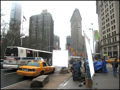 Filming the New York City segment of a commercial for the lovely beaches of the Dominican Republic. Nothing better than a cold rainy morning to contrast and compare. I have found that I can never have too many gaffers on a job, I mean who needs second electrics anyway... Here I am with fellow gaffers and friends Bob Bushfield (left) and Kevin Hunt (right) and yeah, that’s me in the center.