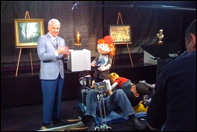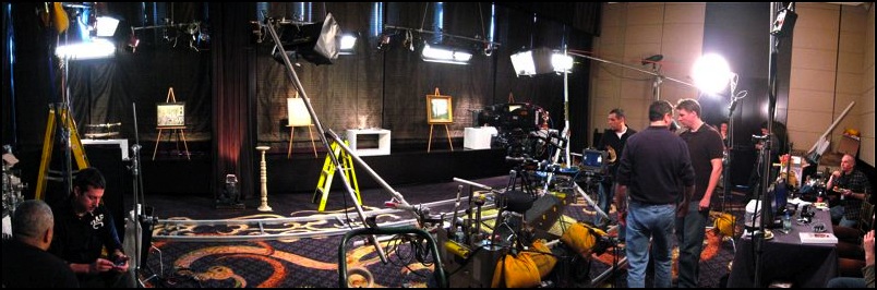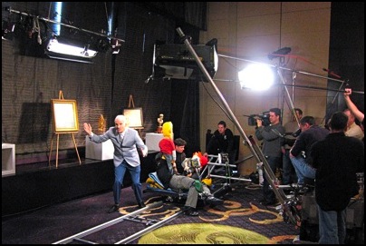 Press junkets used to stick the star next to a poster of the movie and someone asked a whole lot of dumb questions. These days the promos we do have become a much more complicated affair. Here is another Jib & Crash Cartoon Network Promo for the movie “Pink Panther 2” with Steve Martin. Rig required two Dolly Tracks, one for both puppeteers, one for the camera with two outriggers for lighting moving in tandem with talent and puppets. The whole scene was shot in the Mandarin Oriental Hotel which transformed to look like an art gallery. Mel Williams Director of Photography, John Roche Gaffer, Michael Vazquez Key Grip.