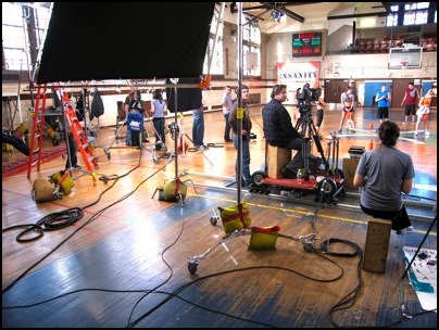 Here we are at Lehman College in the Bronx for an Insanity Exercise Video. The Lighting while not Rocket Science, is still a test of the capabilities of the Arri Max 18K (plus several 6K Par’s) to hold stop against a bunch of old big gym windows and Mother Nature. If we had the budget and time a Softsun would have been most welcome... but we made it work and the output of the Arri Max was quite impressive.